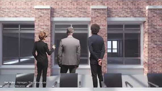 How does Avalon work? Our 3D experts virtually recreate your building using your technical access data. Then, a high-resolution model is projected onto the five walls of the virtual room at Reynaers Campus, our headquarters in Belgium. Put on the responsive 3D glasses, take the handle and enter your future project with up to six other stakeholders in this collaborative working tool.
